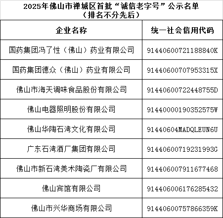 附件:2025年佛山市禅城区首批“诚信老字号”公示名单